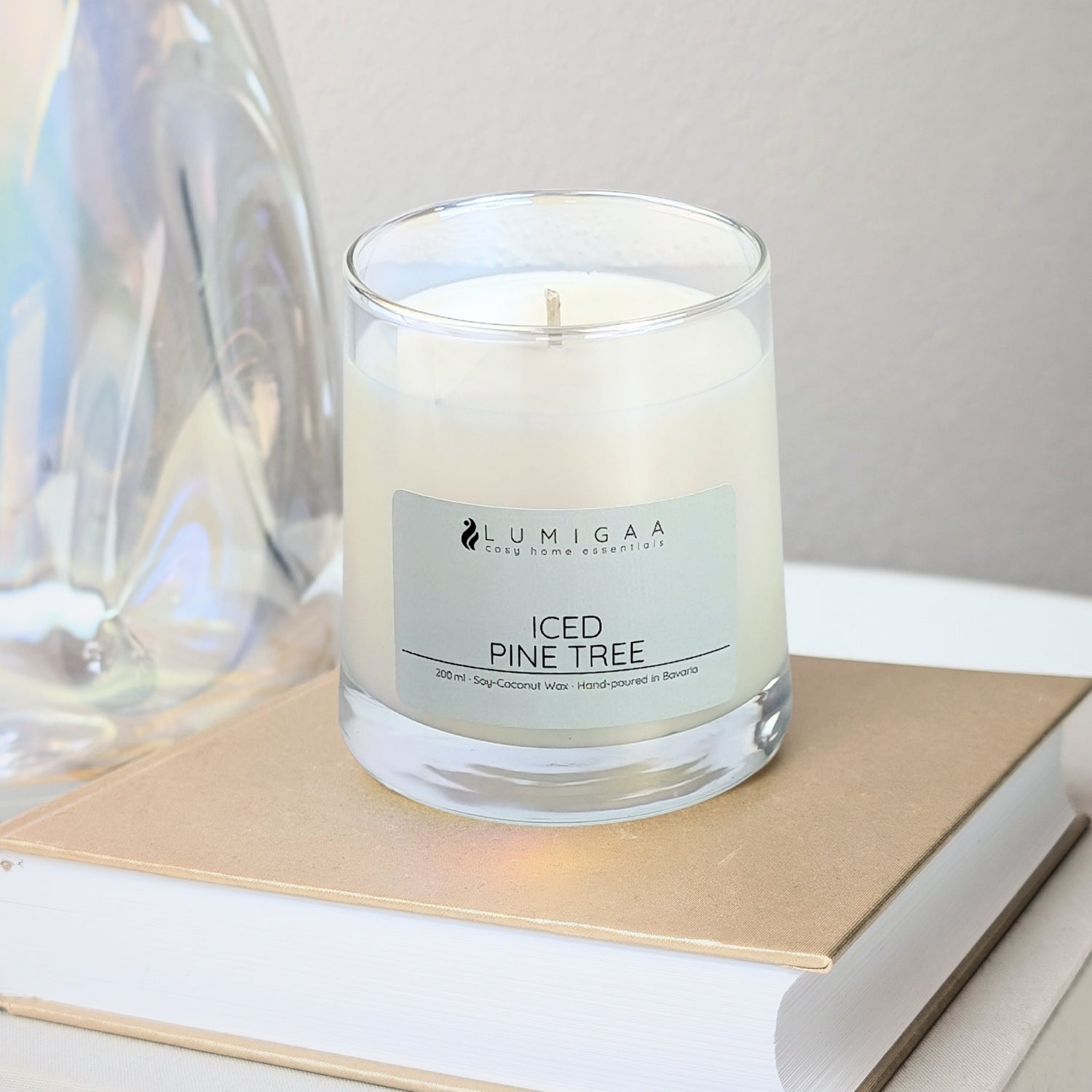 AYVA – Iced Pine Tree bringt klare Kühle und tiefe Geborgenheit in Einklang. Diese handgegossene Duftkerze im irisierenden Glas vereint frostige Fruchtnoten mit harzigen Waldakkorden und einem Hauch von warmer Eleganz.