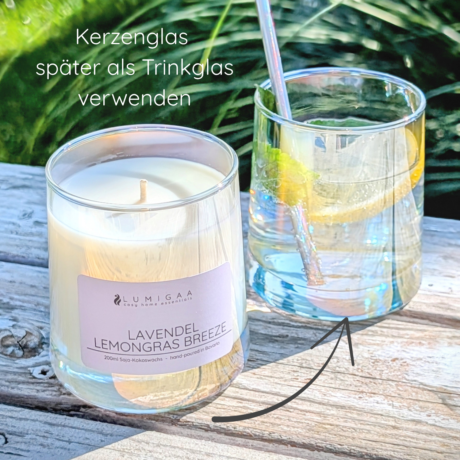 Nach dem Abbrennen bleibt das Glas – als nachhaltiges Wohnaccessoire, dekoratives Teelicht oder Aufbewahrung für kleine Dinge.