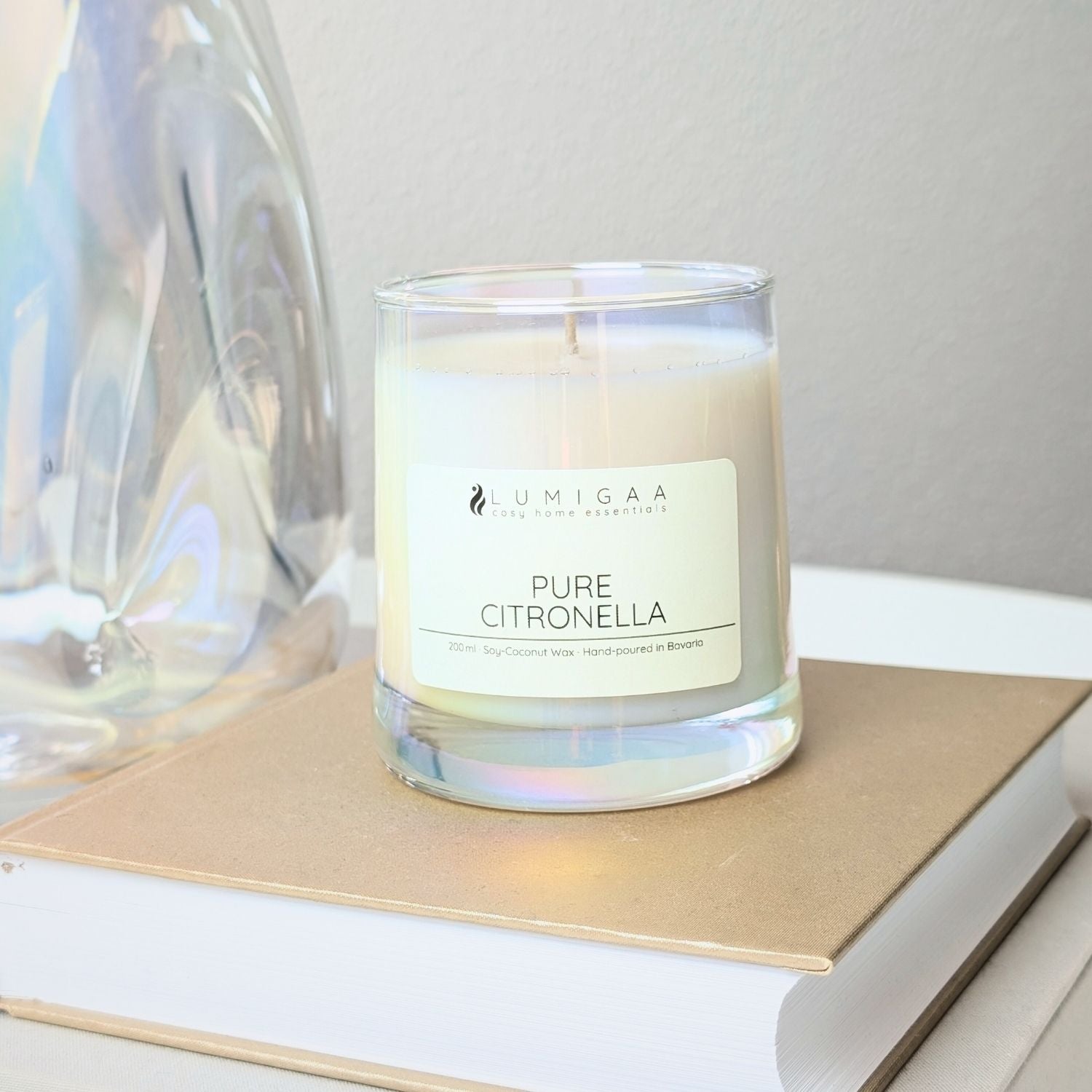 Frisch, klar und belebend – Citronella Pure ist der ideale Duft für warme Tage und laue Abende. Die handgegossene Kerze aus natürlichem Sojawachs entfaltet eine angenehm zitronige Frische mit dezent herber Tiefe – perfekt für dein Zuhause oder als stilvolle Outdoor Kerze auf Balkon und Terrasse. Ob als Geschenk, für besondere Momente oder einfach zum Abschalten – diese Duftkerze vereint modernes Design mit der wohltuenden Wirkung einer Duftkerze für drinnen und draußen.