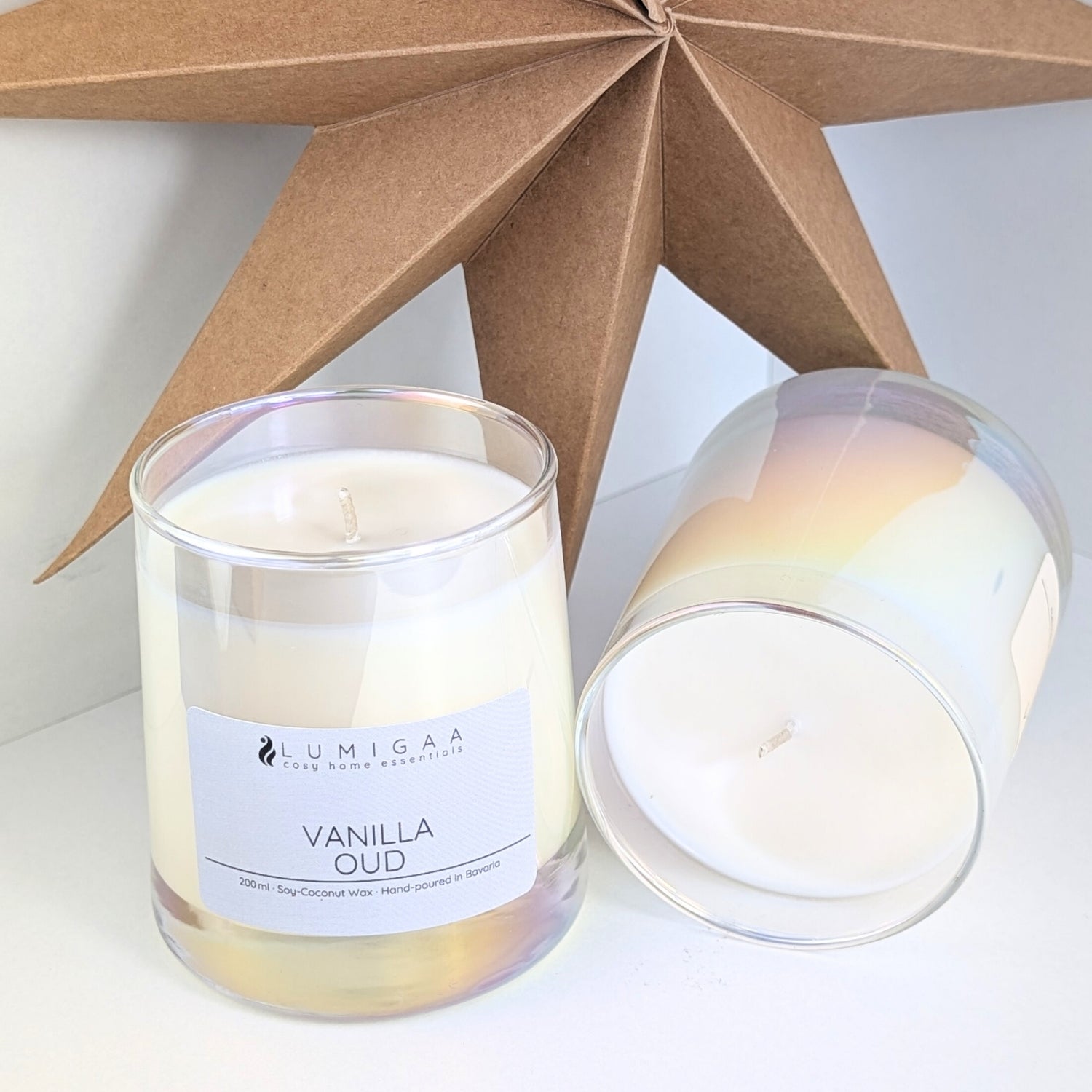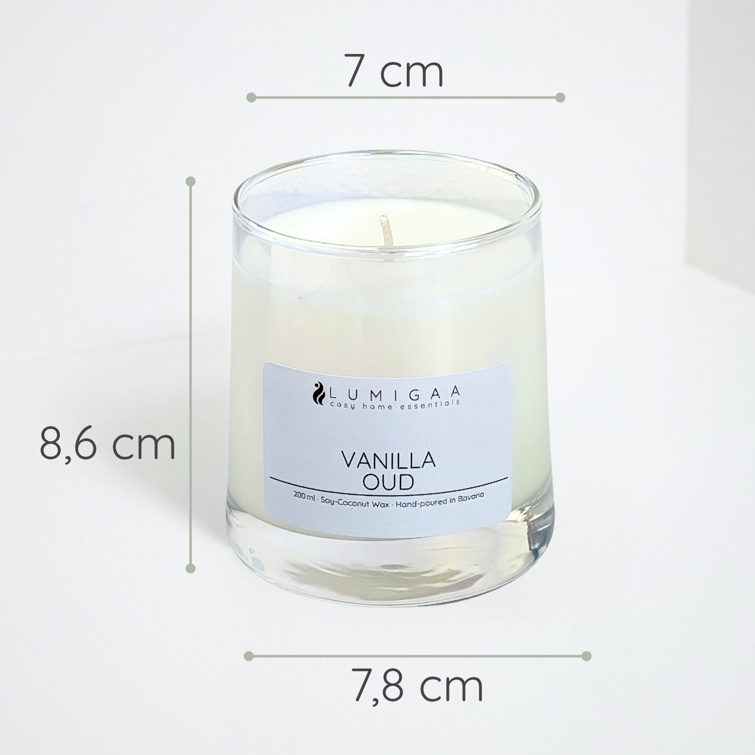 Die raffinierte Komposition aus feiner Vanille und edlem Oud-Holz verströmt eine luxuriöse Atmosphäre – perfekt für besondere Abende, persönliche Auszeiten oder Räume, die Ruhe und Tiefe ausstrahlen sollen.