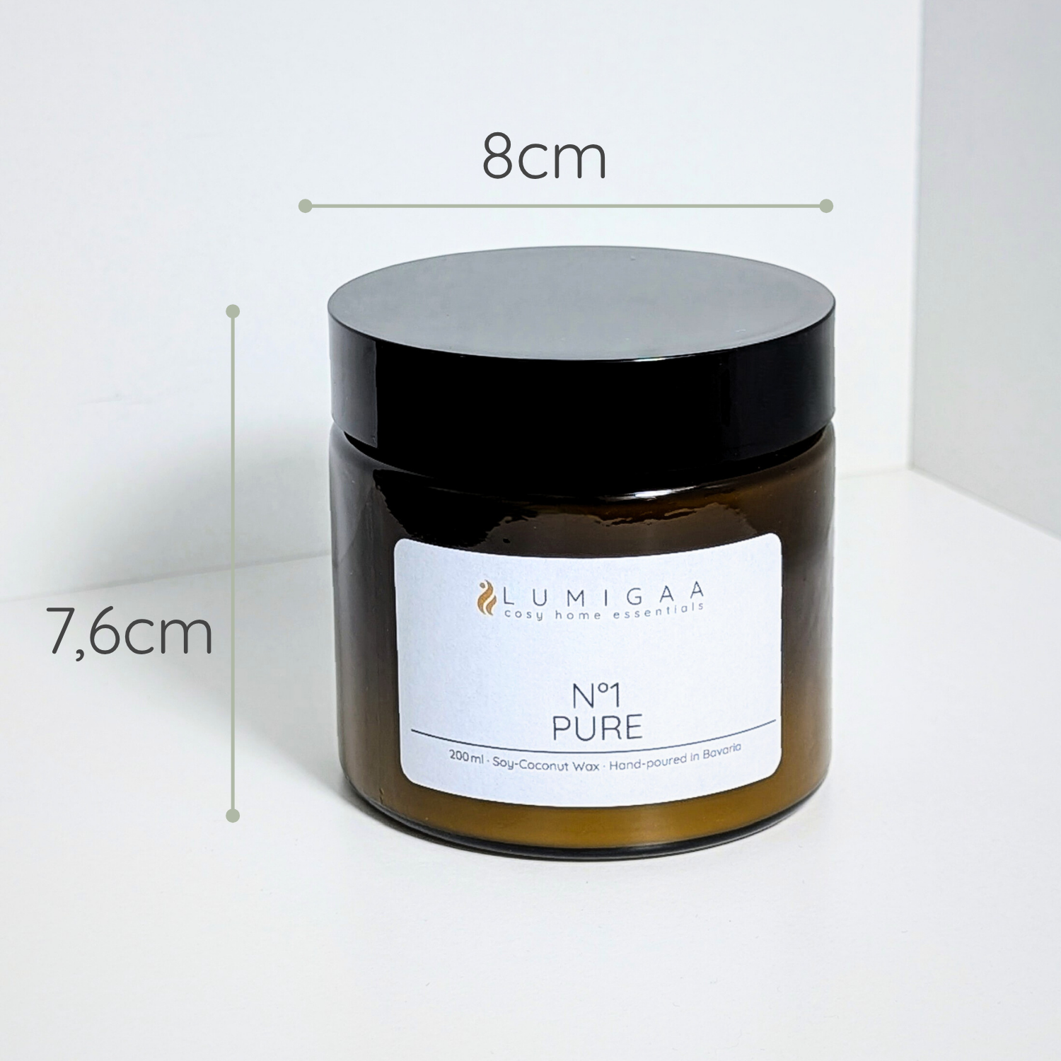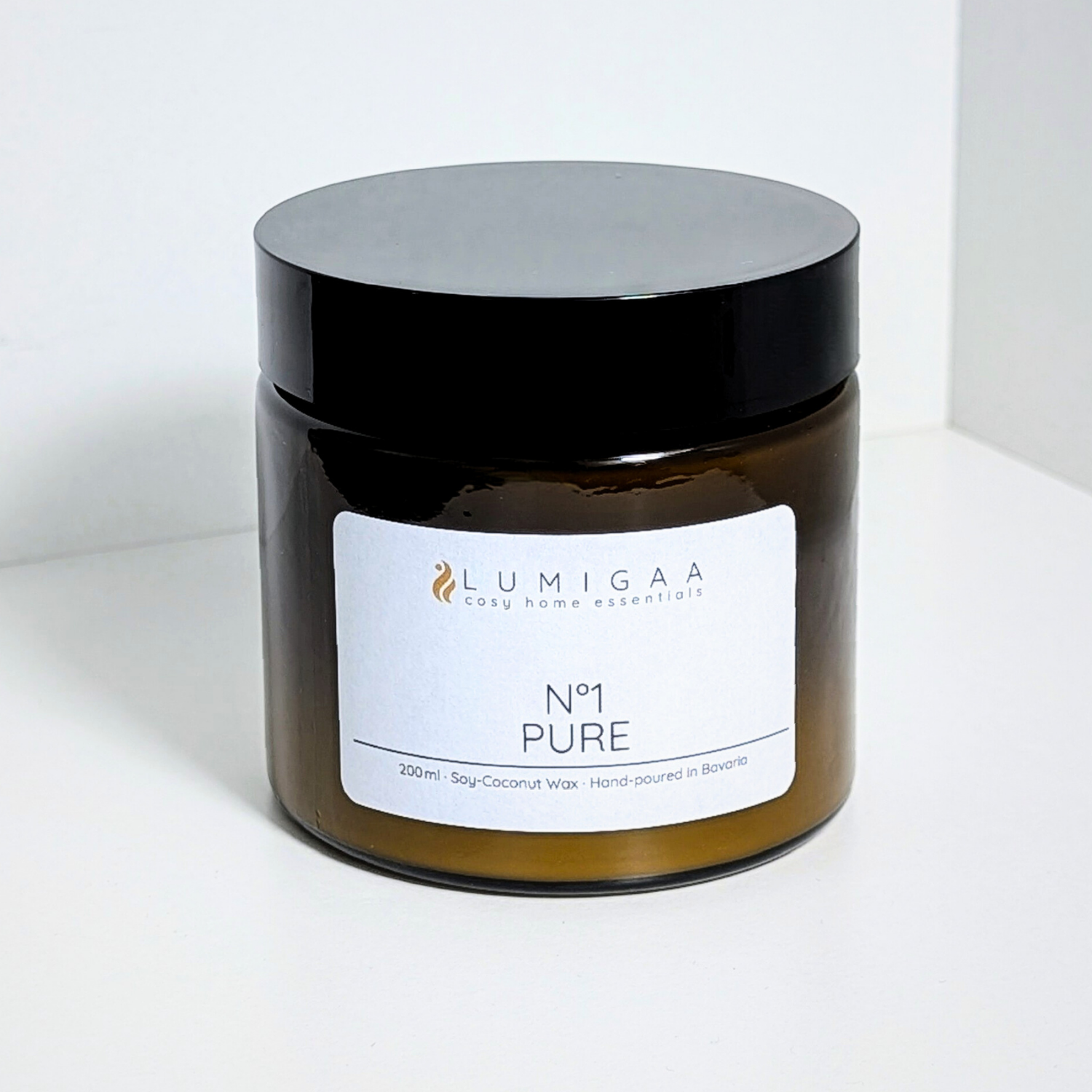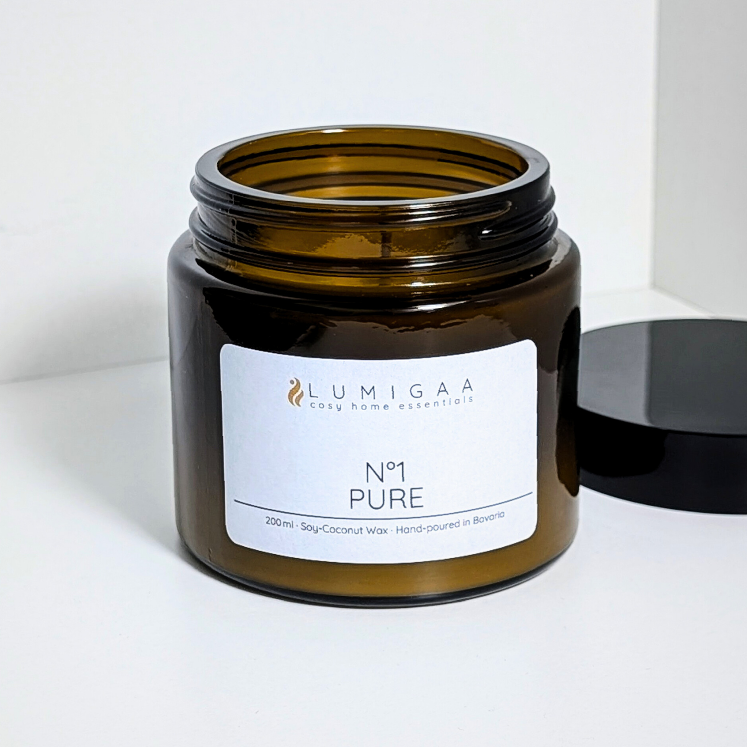 Handgegossen in den braunen Glastiegel, bietet dir NURA Pure einen klaren Moment ganz ohne Ablenkung.